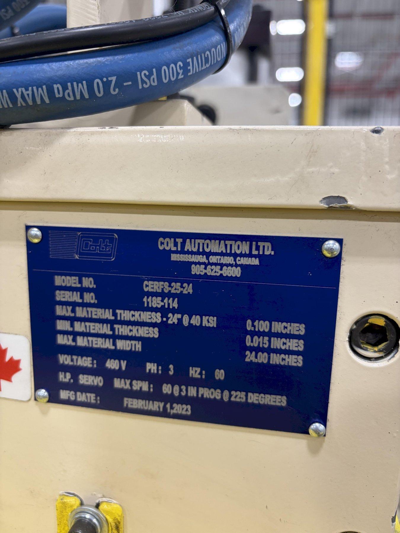 24" Colt Servo Press Feed Line New (2023) 24" x 8,000 Lbs Motorized single end coil reel, 24' Wide Servo press feed x 24" x 0.060" max thickness,with Unist uni roller stock oiler,Over arm,Photo electric eye Like new condition